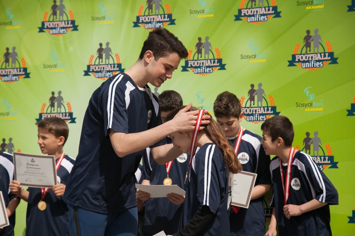 What do we do specifically to achieve this goal? Within the scope of this project, on a Saturday between 13:30 and 15:30 each month, we meet with Syrian children of ages 9 to 12 from Fatih and Başakşehir districts and bring them to the Baltalimanı astroturf football field via an arranged shuttle bus. Following some basic condition training, running, and trainings on tactics, shooting and passing, we proceed for the match. You may find some images, videos and news about our project on twitter.com/footballunifies and instagram.com/footballunifies. The first period of the project started in September 2016 ended on April 22, 2017, one day before the Children's Day that has been celebrated traditionally since 1923. After the final match in Baltalimanı Football Field, our children received their medals, certificates, football kits and their professional football shoes provided by our sponsors during a beautiful ceremony which also hosted their parents. I believe that this experience will instill hope in the children and arouse a feeling of "I can do it!".